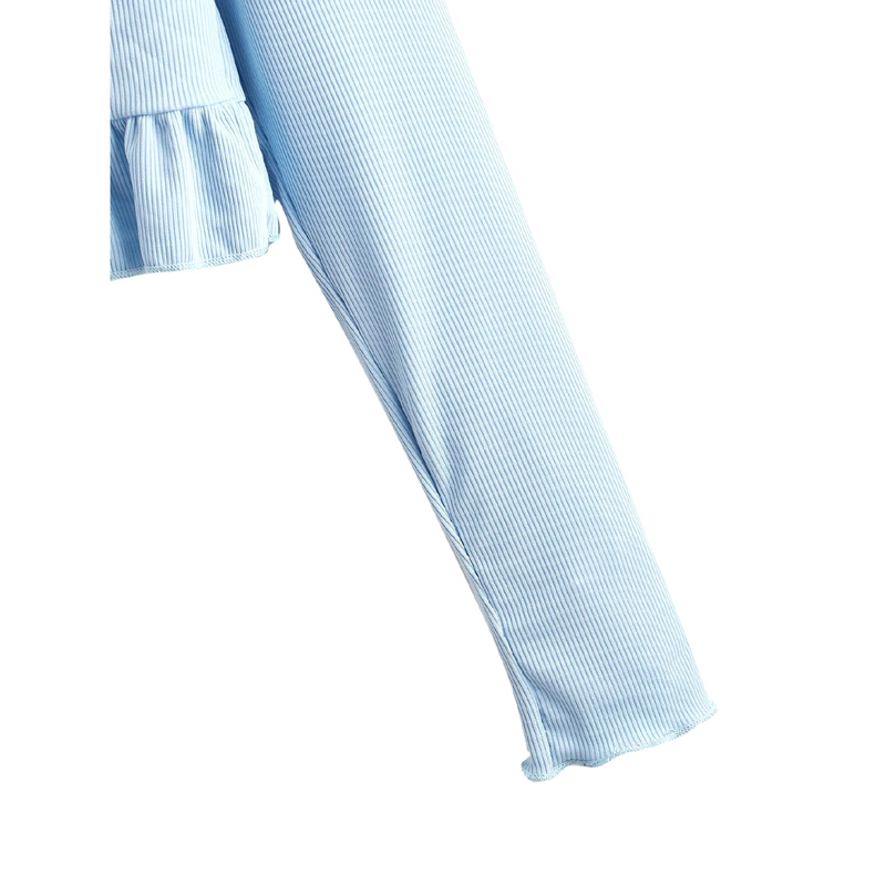 Layed Sleeve Knot Hem Crop Blouse