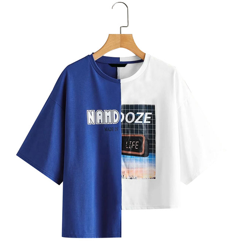 Mixed Print Two Tone Crop Tee
